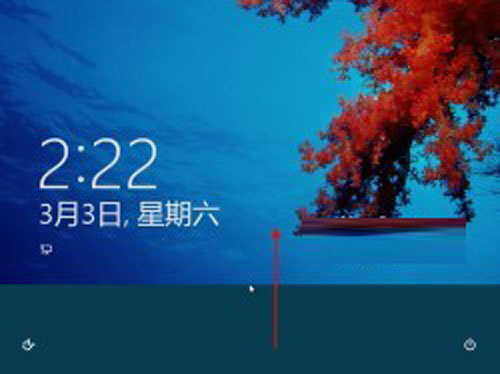 1、Win8系统启动完成后,会显示下图所示的画面,鼠标移动到屏幕下边缘,按住左键向上拖拽,图片“大幕”向上揭开,显出登录界面;