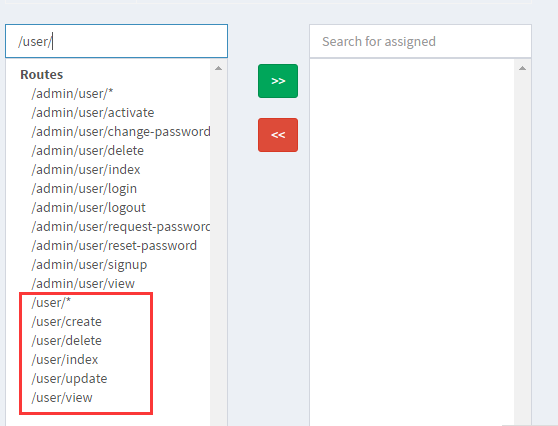 点击新增,成功后会跳转到该权限的详情页面,像下图中所示,们选中/user/*系列移动到右侧