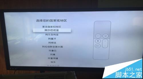 5、接下来就是选择语言和国家了。之后会出现设置Apple TV的两种方法。一种是与ios设备一同设置,这种设置方法会将手机中的一些信息转移到Apple TV中,需要手机连接WIFI和蓝牙,参考第六步。第二种方式就是手动设置,参考第七步。