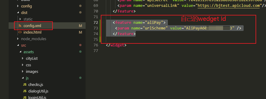<feature name="aliPay"> <param name="urlScheme" value="AliPayA000000000" /> </feature>