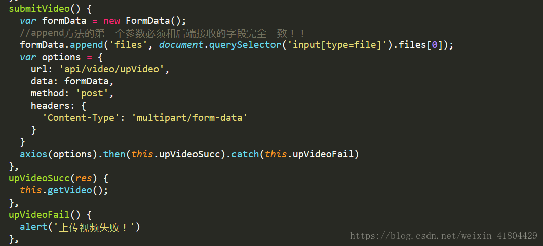 以上就是俊逸微笑最近收集整理的关于vue中上传视频或图片或图片和文字一起到后端的解决方法的全部内容,更多相关vue中上传视频或图片或图片和文字一起到后端内容请搜索靠谱客的其他文章。