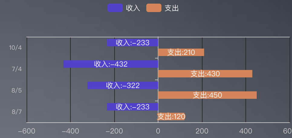 既可以横向比较同一天的收入支出情况