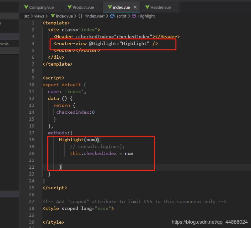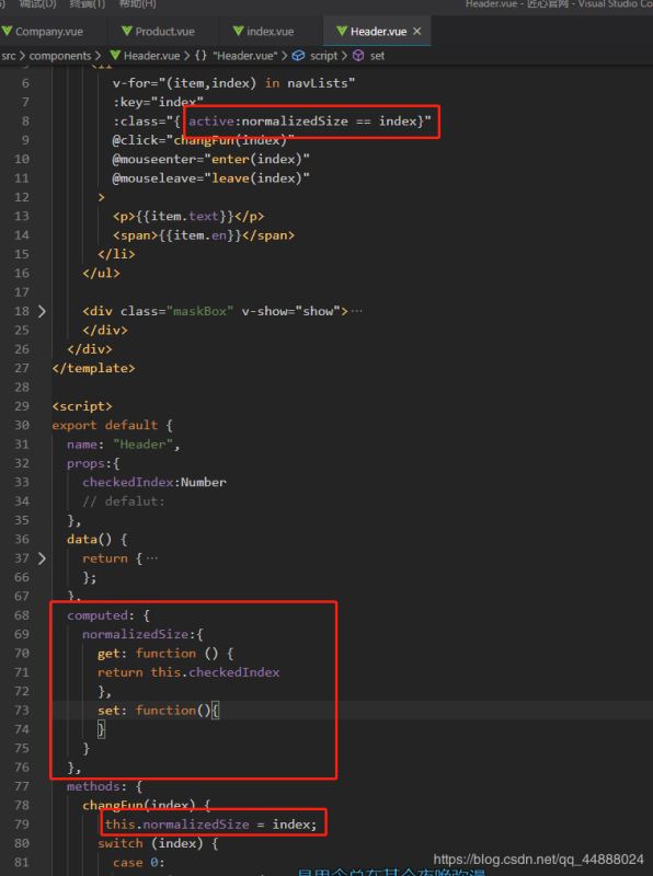 在头部组件里面控制导航高亮显示是checked,默认值是0,触发点击事件会重新赋值,跳转路由,当刷新页面,checked值是0,所以要监听checked时刻发生变化;利用到vue的父子和子父传值;监听状态的变化