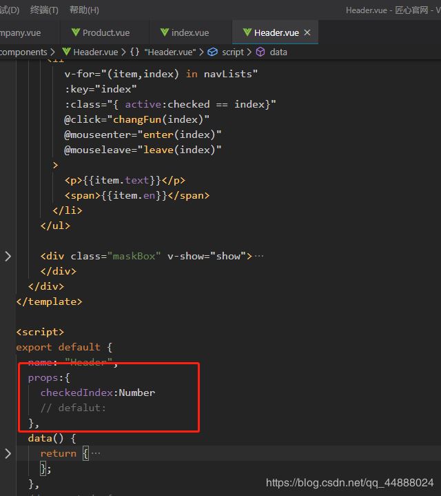 父组件把值传给header头部组件,头部组件通过prop接收