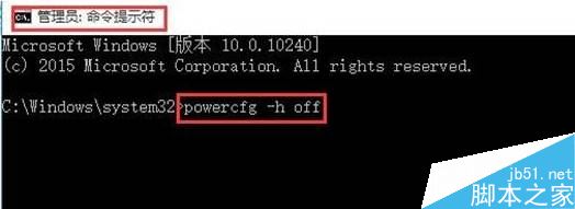 2、在命令提示符黑框中输入:powercfg -h off 按下回车键即可关闭休眠模式了!