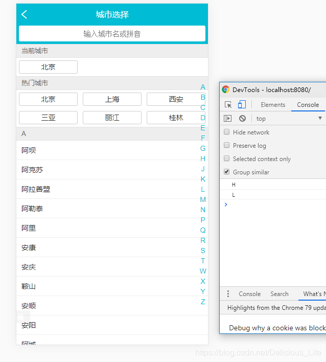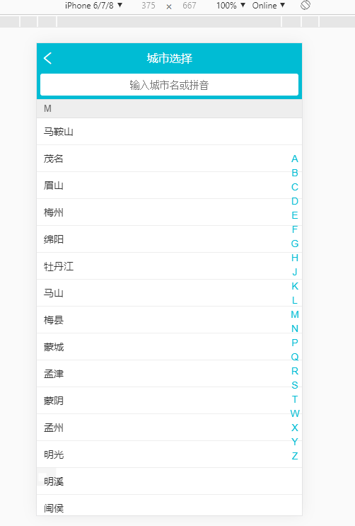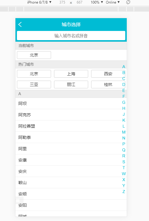 如图,我想要实现当点击字母L,页面定位到L开头的城市名
