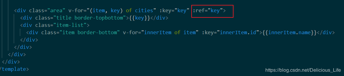 最后记得在城市列表区域内注册一个引用信息:ref=key,用来监听你选中的key值