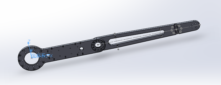 1. 当从外界读入STL类型的模型时,其会按照它内部的坐标位置进行显示,因此它的位置和大小是确定的。为了以后的定位以及移动、旋转等操作的方便,需要先在SolidWorks中创建一个坐标系。如下图所示,坐标系建立在大臂关节中心点。