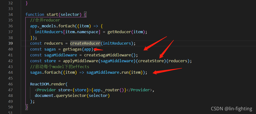通过getSagas转化每个model的effects并且存在一个数组里面,然后通过forEach一个个run起来。