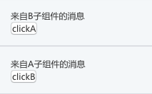 当点击clickA的时候,子组件B接收到了子组件A的消息,反之亦然。