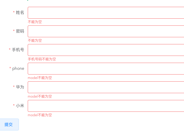 对于子对象里面又嵌套数组的数据结构,如果想校验数组里的元素,需要在写一层form,用子对象作为新form表单再重新走一遍流程即可,具体例子请看上面的代码
