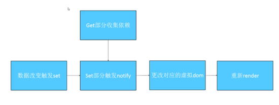 defineProperty 定义对象的属性,只不过属性里的get和set实现了响应式。