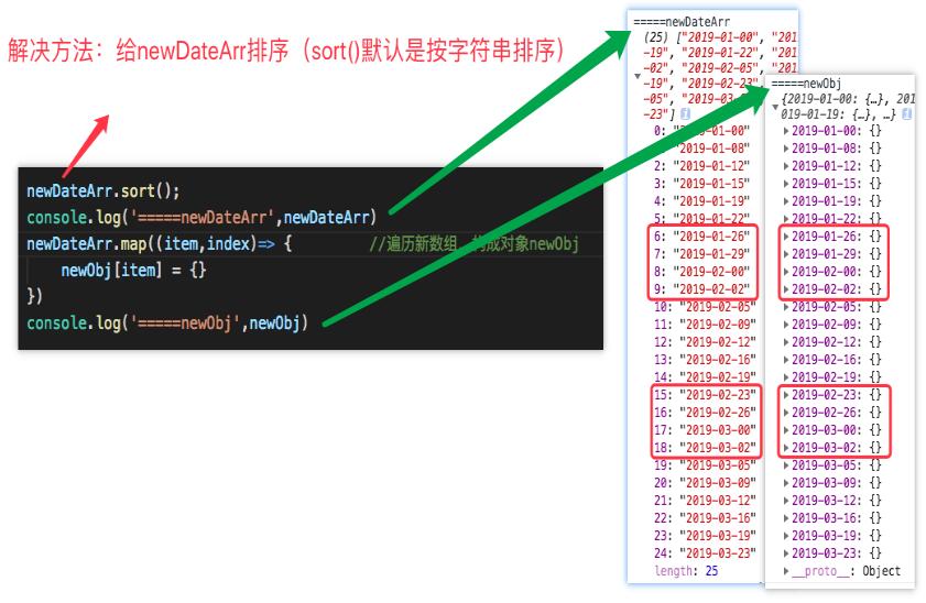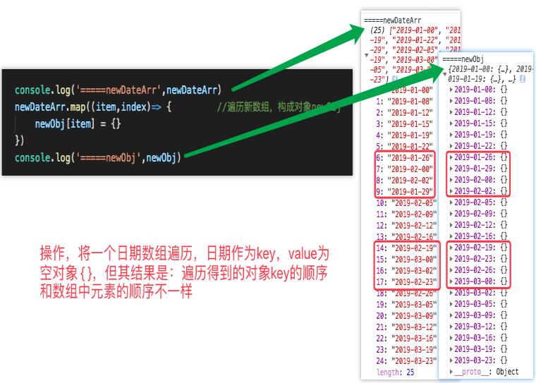 一、情况说明:在wacth里面生成了一个日期字符串的的数组(如下图1),如果遍历这个数组生成一个以日期为key的Object,但是数组里面的元素顺序和Object的属性的顺序是不一样的,并且在vue模板中遍历这个Object并显示key,得到的是数组的元素顺序(如下图2)!