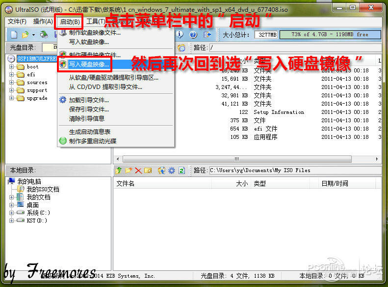然后在UltraISO上端“启动”菜单下的“写入硬盘映像”