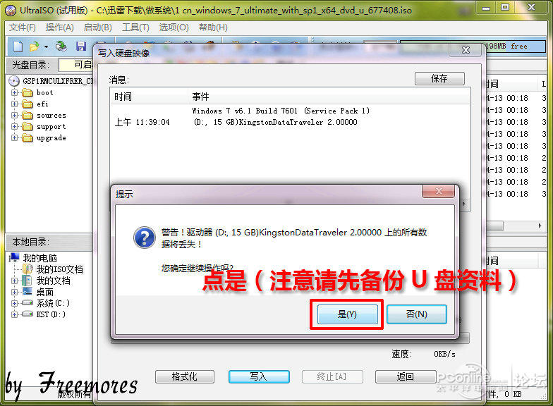 当然,一定要在做系统盘的时候备份好资料。我的U盘是空的,点“是”。