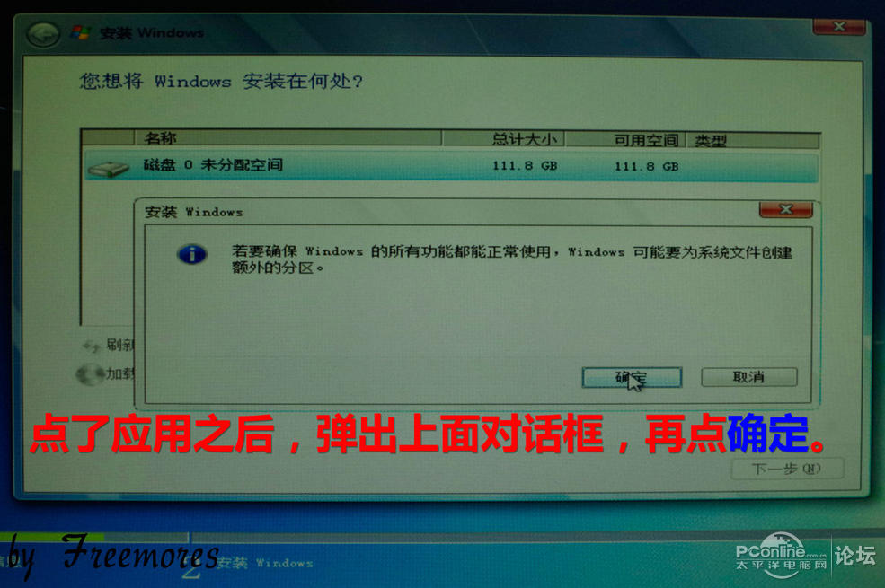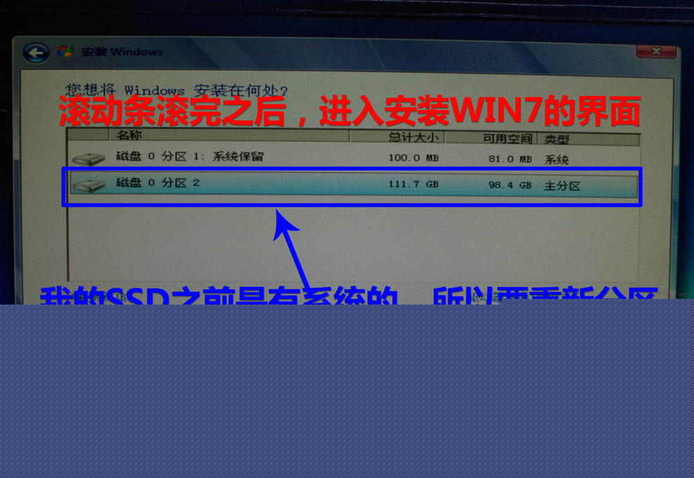 滚动条滚玩之后,进入安装WIN7的界面。