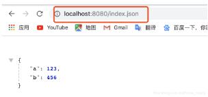 通过打包运行,我们想在浏览器通过访问localhost:8080/index.json直接可以访问到我们的json对象,不做配置的情况下,在浏览器访问显示如下:(还是初始页面)