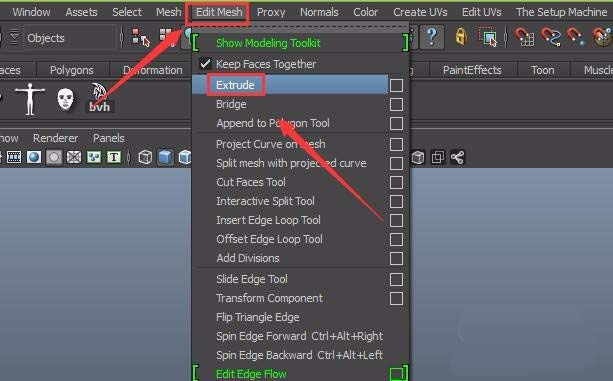 11、选择extrude命令,将这些面挤出一段距离,如图所示: