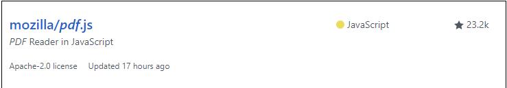 一开始我还是很倾向使用这种方式,希望能采用一个较为好的JS插件的方式,实现PDF的在线预览(通过Web预览),因此在Github上找到排名比较高的PDF插件
