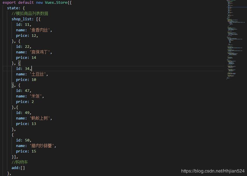 在state中:定义两个变量,分别是商品列表,购物车列表,购物车开始为空