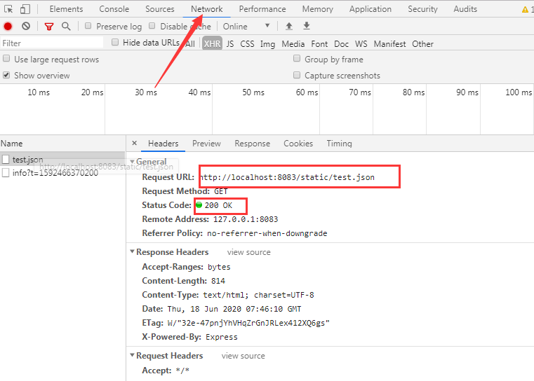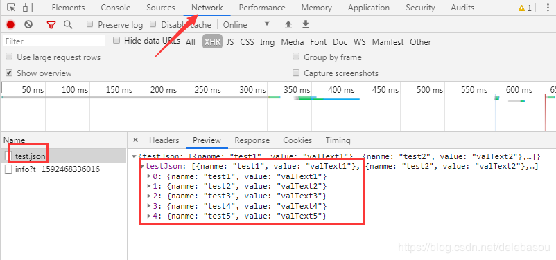 回头看一下项目,果断的在根目录下创建一个static/test.json文件,在目标页面下fetch获取这个json文件里的数据: