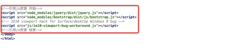 3.在底部依次引入jquery.js、bootstrap.js及兼容ie的js:
