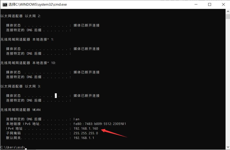 3.查看开发机的ip地址,并告诉给其他小伙伴,还有端口号