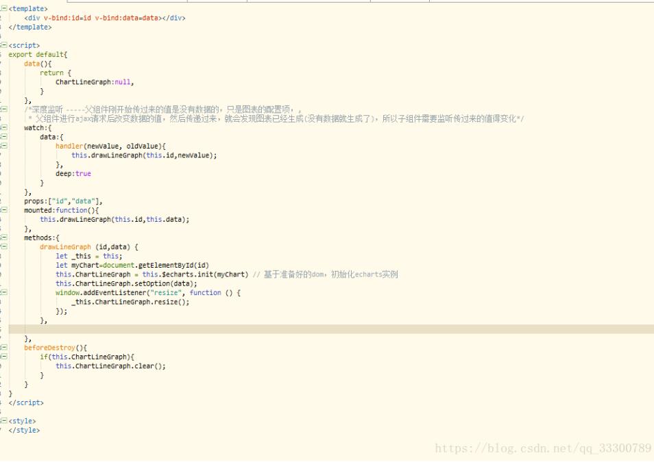 3.父组件我们看完了,现在我们看下是如何封装的图表类linegraph.vue子组件,我先截图一下,然后解释: