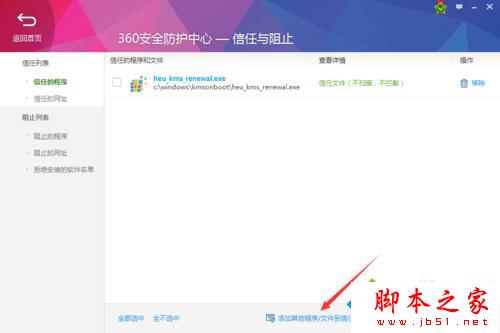 3、此时列表中并没有host文件,我们首先点击下方的加号“其他程序/文件到信任列表”;