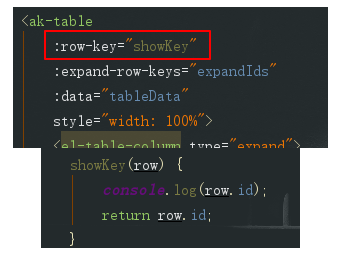 首先传入 ak-table 的 row-key 属性的值,它是一个函数,即引用类型值,那么根据文章开头所说,如果对引用类型的值进行一般的深拷贝操作,是会丢失函数和数组等数据的。