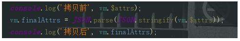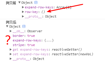 在 ak-table 中,找到 row-key 属性,因为没有在 props 中定义,所以应该是保存在组件的 attrs 属性中。去到 mounted 方法,在此打印attrs属性中。去到mounted方法,在此打印attrs 的值,看看拷贝前后的数据对比。