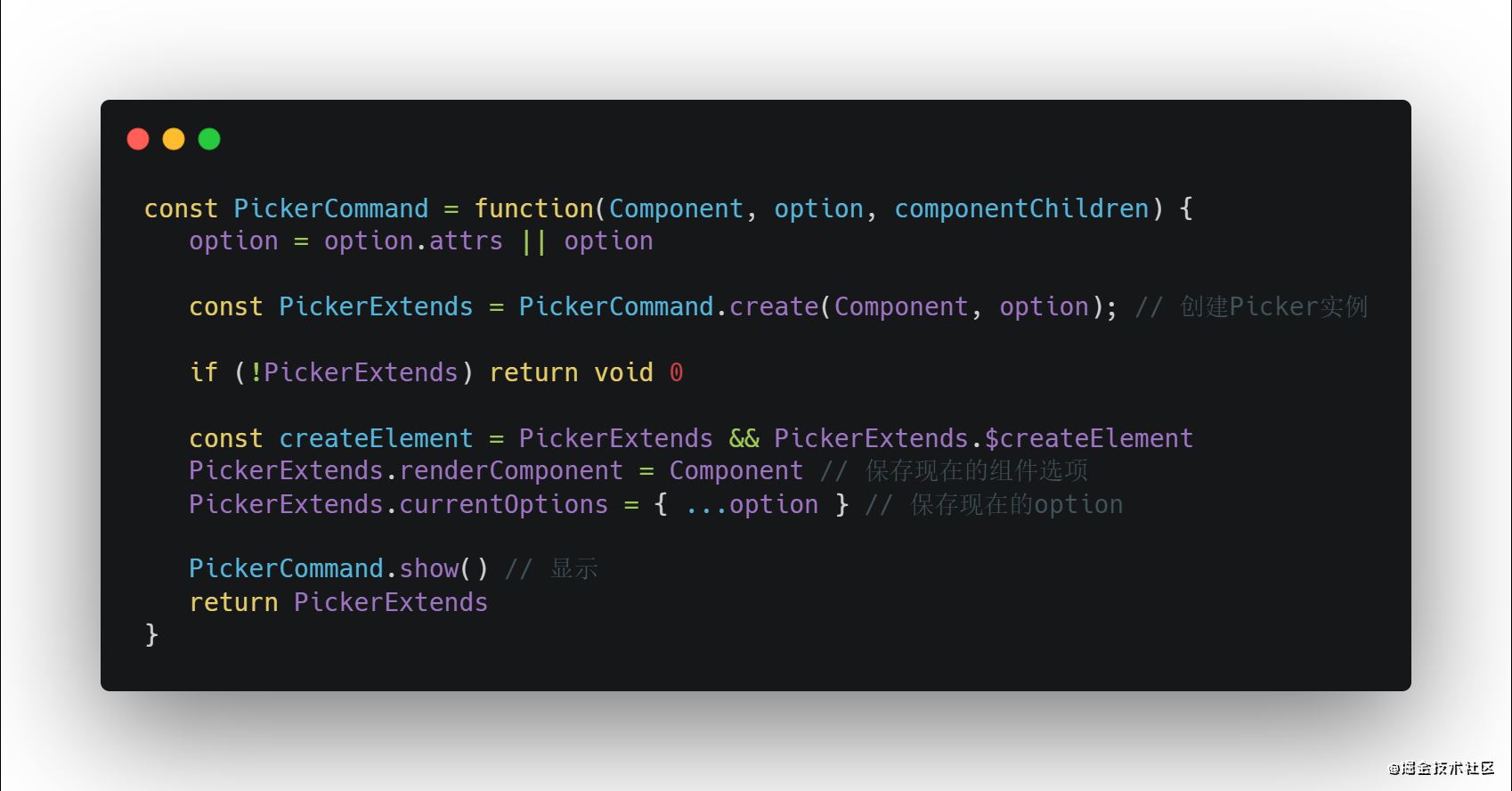 - 在render函数里,Picker将之前传入的组件选项作为默认插槽放置到内部,并且自身作为当前实例的子组件充当根元素