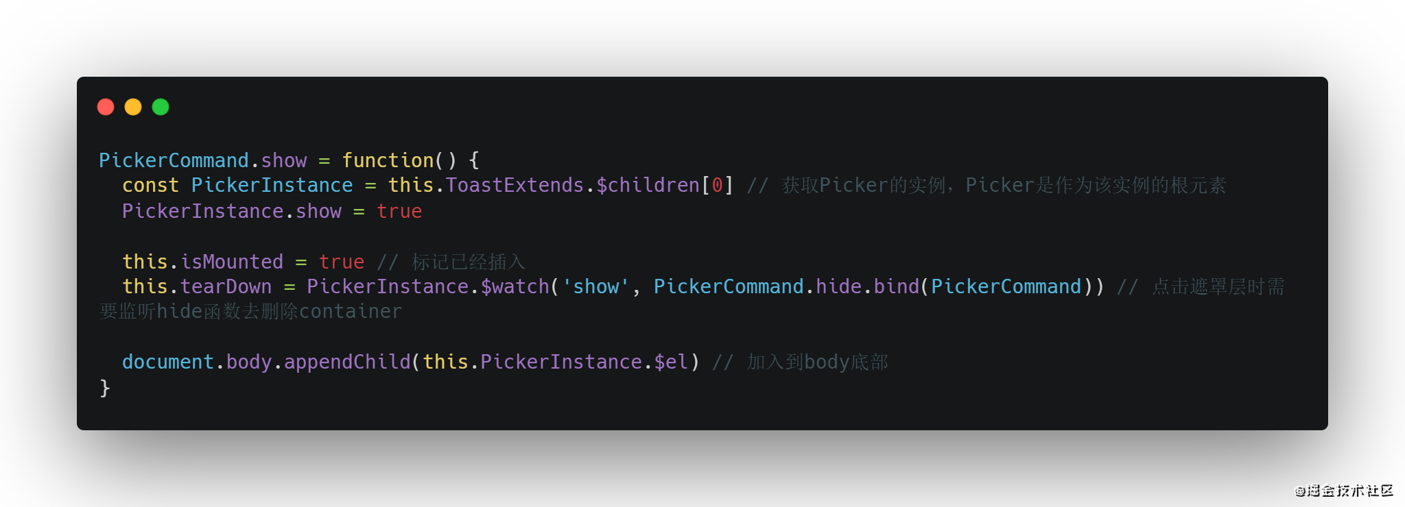 - 点击mask元素会将Picker隐藏,这里需要再定义一个hide方法