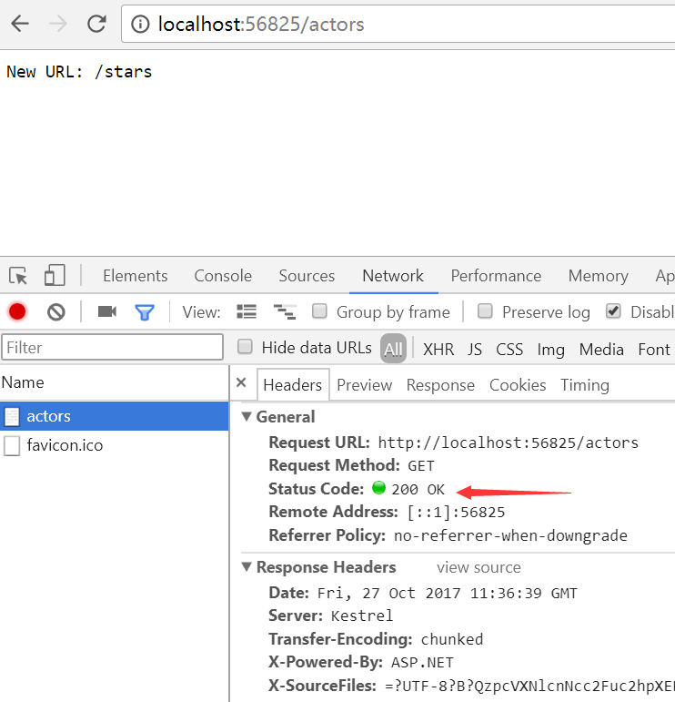 在地址栏输入:http://localhost:56825/actors,再次观察重定向过程: