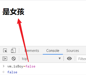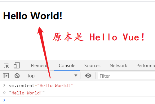 如果你在控制台进行修改 vm.content 的值,绑定的数据依旧会发生变化