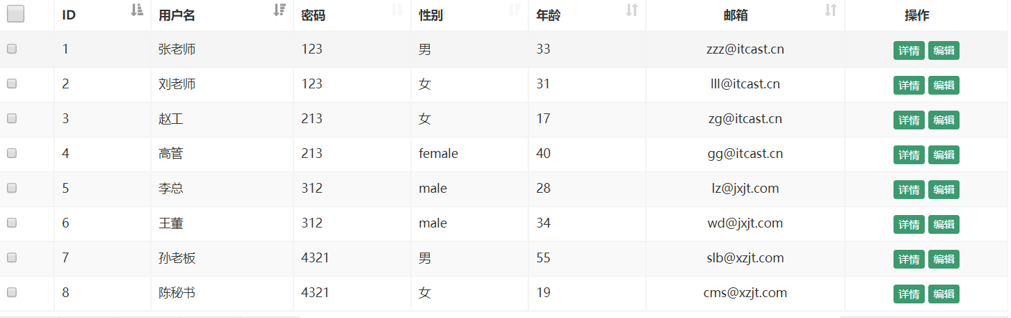 首先是关于所有用户数据展示的,通过一个对于 userList 的遍历,然后通过大括号组和 X.x 的形式取出属性值