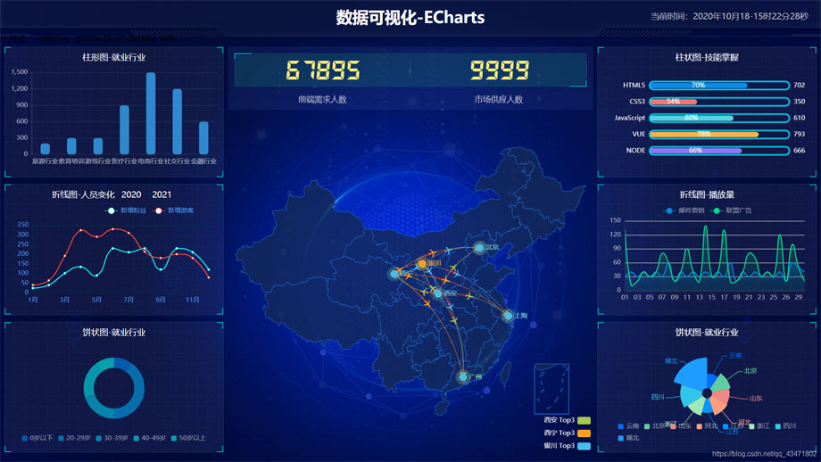 由于最近项目需要做可视化数据展示,也就是用图表展示数据,他还有一个很高端的名字:“大数据可视化”(参考图一),首先考虑选择什么图表库来作为基础开发,目前被普遍认可的是Hcharts、Echarts、AntV。