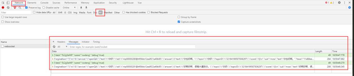 打开浏览器控制台,选中指定的标签,便于对WebSocket连接进行监控和查看。