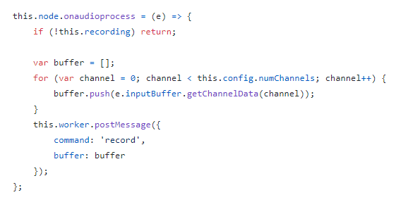 使用onaudioprocess方法监听语音的输入: