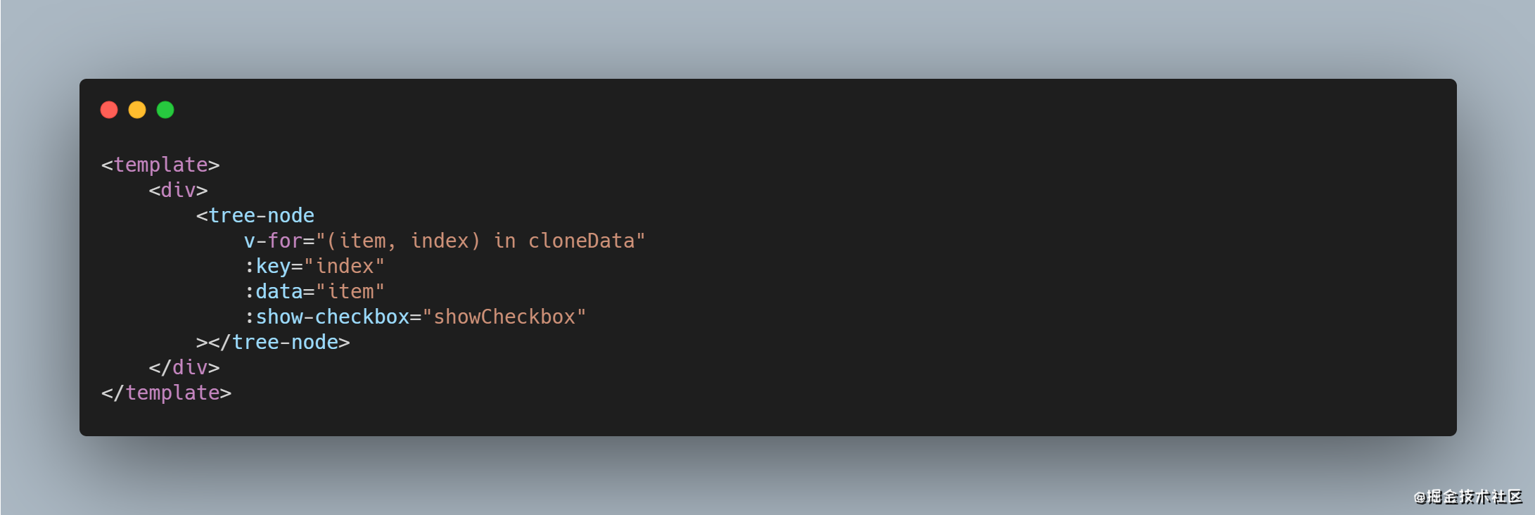 然后在template里来引入node.vue,然后循环cloneData来循环node.vue。node.vue接受两个prop