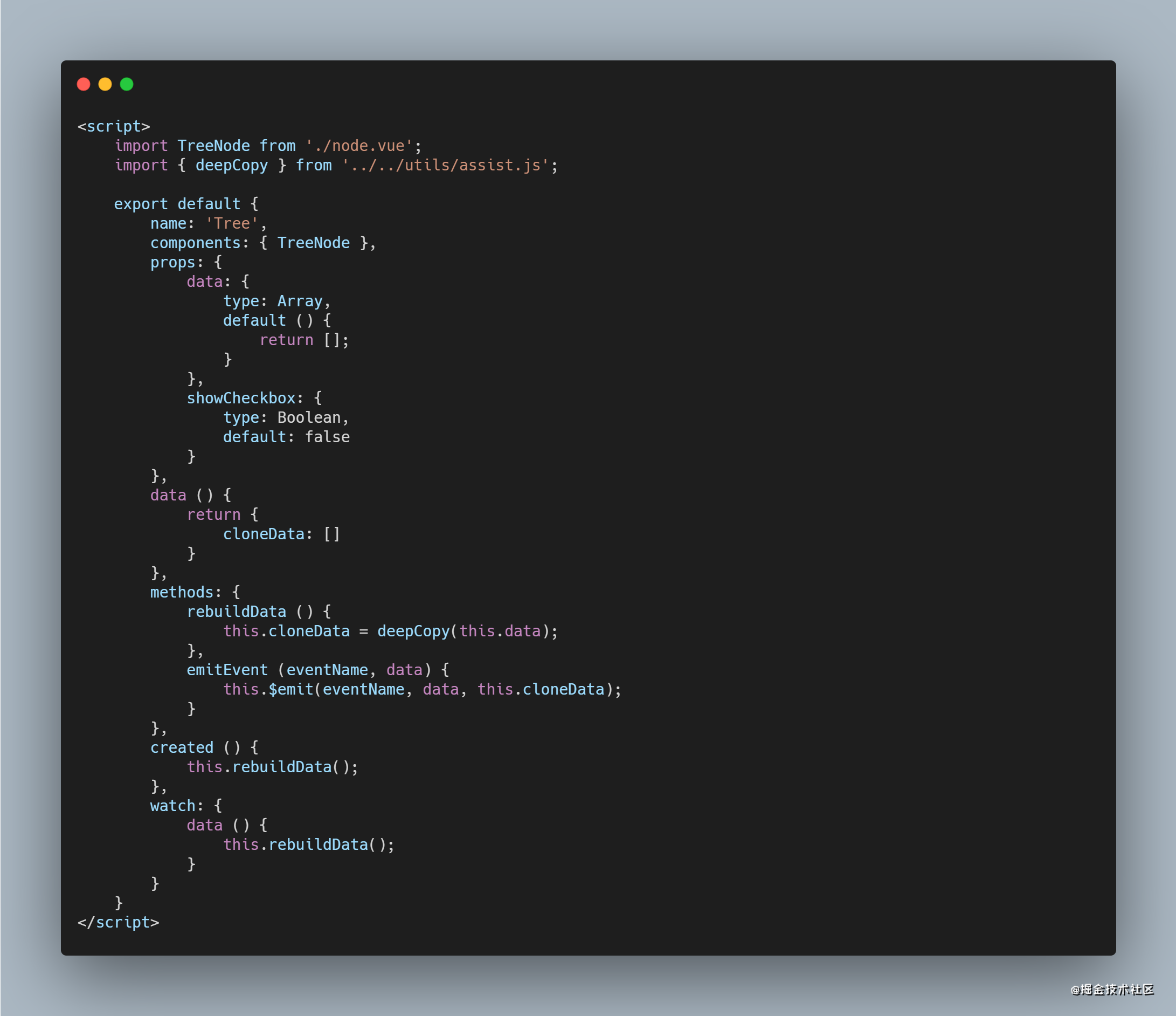 这是使用了一个deepCopy的方法,这个是深拷贝的简单实现,递归的去重新重新赋值data数组,开辟新的堆内存与传入的数据无关联。不会破坏原有的数据