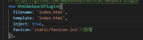 3、如果有新开页面无法显示图标问题,修改bulid下的webpack.dev.conf.js文件