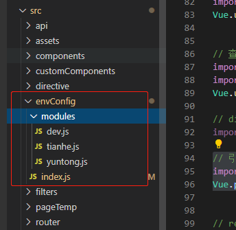 我的项目下,在src中新建文件夹envConfig文件夹,在index.js里面判断项目启动的环境,引入对应的环境变量文件