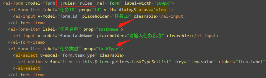 并且,在<el-form-item>中添加prop属性,对应rules中的规则