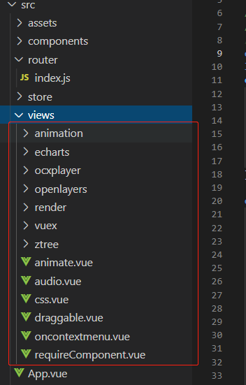 文件的路径有2种,(1)简单的vue功能页面,直接挂在views文件夹下;(2)复杂的页面,在views下在新建文件夹进行处理。