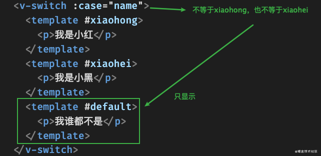 如果没有匹配到任何一个 case ,并且还有 defalut 插槽时,显示 defalut 插槽