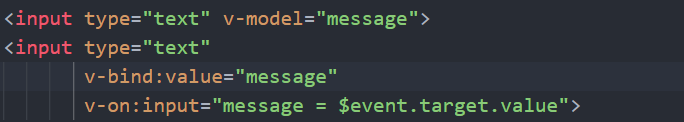 通过表单input绑定模型数据message,表单数据变化data.message也发生变化