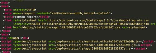 而assetsPublicPath则是确定打包后的文件引用路径:看看打包后的index.html文件的js和css资源的引用路径: