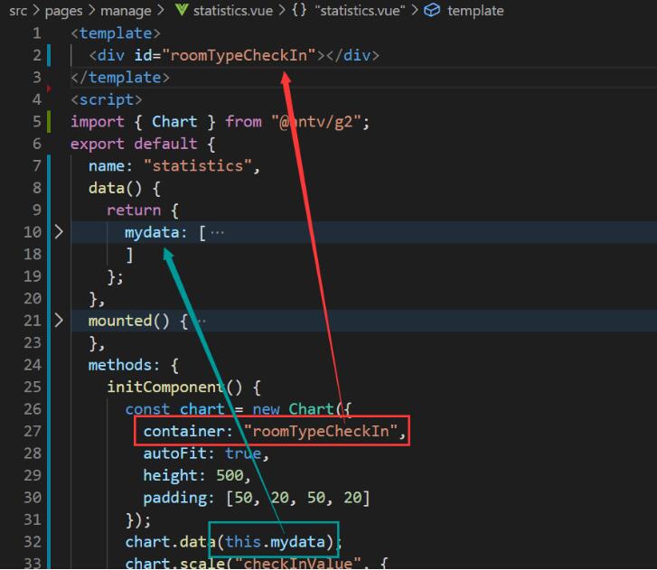 此处需要把默认的container:‘container' 修改为自己指定的容器id,渲染数据时,将data修改为this.xxx(自己定义的数据名称),不同的图修改的地方可能会不同