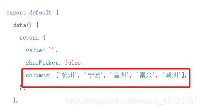 vant-picker组件columns属性接收的是一个数组,如官方例子中: